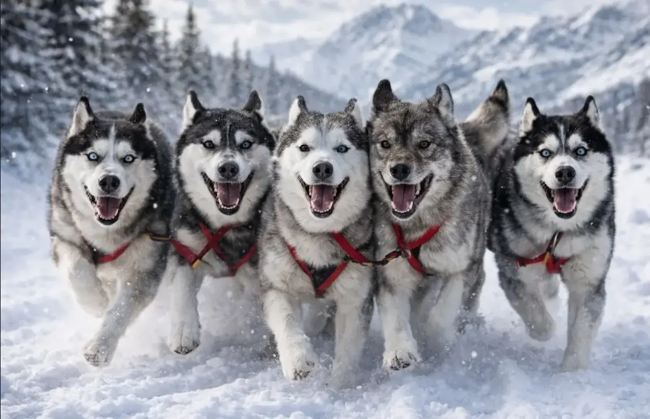 Izjemna presnovna učinkovitost. Raziskave Univerze v Alabami in Univerze Cornell kažejo, da Haskiji na dirki Iditarod pretečejo 160 km dnevno pri -20°C v obdobju 8–10 dni brez pomembnih presnovnih markerjev utrujenosti. Mehanizem je povezan z edinstveno sposobnostjo preklopa maščob v glavni vir energije brez faze ketoze, značilne za ljudi. Telo Haskija dobesedno »ponastavi« presnovo glede na gibanje — pojav, ki ga preučujejo športni fiziologi.